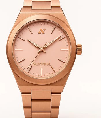Elevate Link Rosé 42MM Unisex Watch in Muted Rose Gold and Sunray is our flagship distinguished timepiece that enhances any style. This 42MM Unisex timepiece features a striking brushed rose gold case, a beveled case dial for women who prefer a larger wrist size and perfect signature look for men. Features an illuminated dial to ensure clear visibility both day and night.