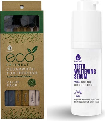 Upgrade your daily oral care with the ultimate combination of sustainability and science. This Pursonic set pairs the earth-friendly power of Natural Cedarwood with advanced V34 Color-Correcting technology to give you a healthier mouth and a more radiant, confident smile. Why Choose the Pursonic Duo? Pursonic blends holistic materials with modern innovation. While the Cedarwood toothbrushes provide the structural foundation for a clean mouth, the V34 Serum provides the aesthetic glow-up you deserve. Perfect for: Environmentally-conscious consumers looking to reduce plastic waste. Individuals with sensitive teeth who avoid traditional peroxide whiteners. Busy professionals needing a quick, effective smile boost. Transform your bathroom vanity into a professional oral care station today. Experience the Pursonic difference!
