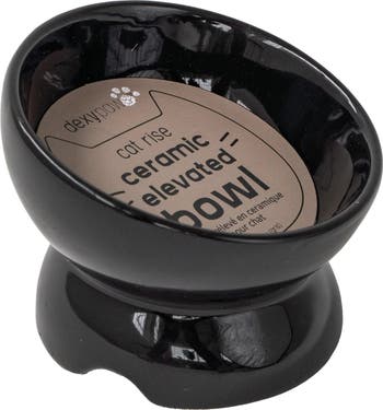 DEXYPAWS: ELEVATED CERAMIC BOWL FOR CATS - BLACK - Featuring a captivating iridescent print that adds a touch of elegance to your feline's mealtime. With a 7oz capacity, this bowl is perfectly sized for daily meals, ensuring your cat gets the right portions without any waste. Crafted with both safety and style in mind, this bowl not only enhances your cat's dining experience but also complements your home decor. The smooth ceramic surface is easy to clean, making maintenance a breeze. Elevate your cat's mealtime with our stunning Iridescent Print Ceramic Cat Bowl—the perfect blend of functionality and flair! By raising the bowl to a more ergonomic height, it reduces strain on your pet's neck and spine, making mealtime a more enjoyable experience. With a capacity of 7oz, this bowl is ideal for portion control, perfectly accommodating your cat's appetite without encouraging overeating. Crafted from ceramic, this bowl is sturdy and durable, ensuring it can withstand daily use while maintaining its elegant appearance. Importantly, it is free from harmful chemicals, providing peace of mind regarding your cat’s safety during mealtime. Keeping your cat's dining area clean is a breeze, as this ceramic bowl is dishwasher safe, making cleanup quick and effortless. Elevate your cat's dining experience with our White Ceramic Cat Elevated Bowl—a stylish, safe, and practical addition to any pet owner's home!