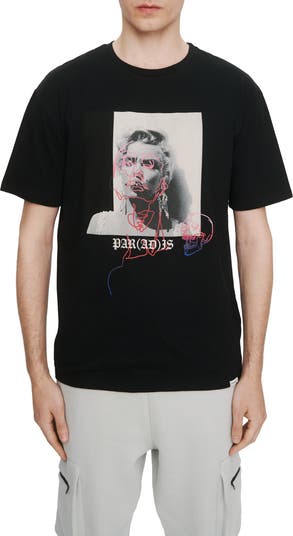 A bold graphic marked with signature graffiti details increases the modern appeal of this cool tee cut from buttery-soft cotton.