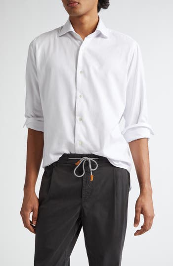 Brushed Cotton Blend Button-Up Shirt