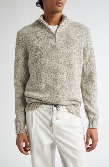 Richly marled cashmere yarns highlight the Italian label's dedication to artisan craftsmanship in this wardrobe-essential sweater topped with a partial zipper.