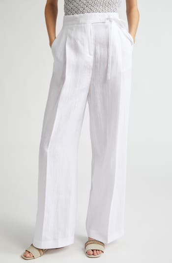 Keep your off-duty look polished in these Italian-crafted pants crafted from breezy linen in a wide-leg silhouette with an easy tie detail at the waist.