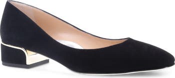 NASA developed PORON® cushioning puts supreme comfort and arch support under each step you take in this soft suede pump set on a block heel with a little glint.