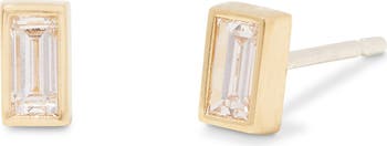 Sterling silver studs plated in 14-karat gold and beaming with baguette-cut diamonds are the easiest way to elevate any look.