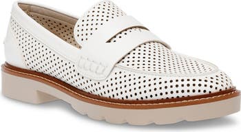 Tiny geometric cutouts keep you cool and comfortable in a warm-weather loafer designed with a classic penny strap.