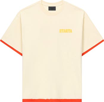 Seek out your next adventure in this street-style graphic T-shirt sporting contrast insets at the sleeves and hem that create a double-layer effect.