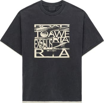 Find awe wherever you go in this faded graphic T-shirt sporting contrast insets at the sleeves and hem that create a double-layer effect.