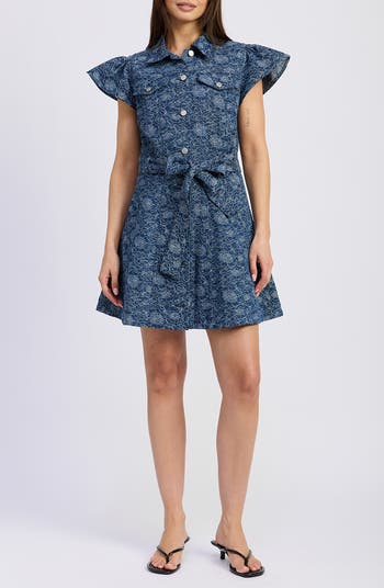 Fields of flowers gentle a belted minidress fixed with ruffled sleeves and perfected with a pair of pockets.