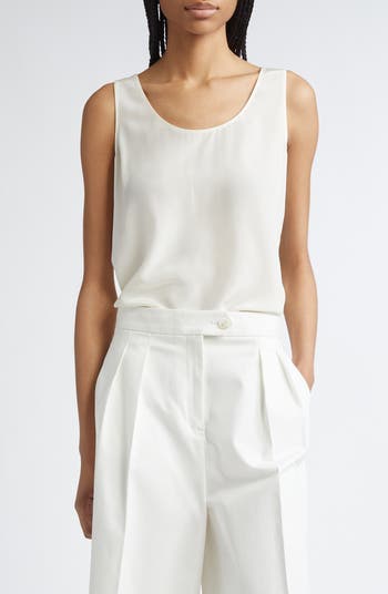 Nellie Partow's paring back in her spring '25 collection came with a self-imposed restricted color palette: black and white. Each takes the spotlight in opposite colorways of this fluid scoop-neck tank cut from semisheer silk crêpe de Chine.