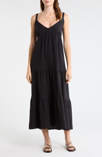 Cut from gauzy cotton, this sleeveless midi is finished with a flouncy tiered skirt for graceful movement.