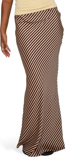 Smart diagional stripes grace this figure-skimming maxi skirt cut from a lightweight and drapey woven fabric.