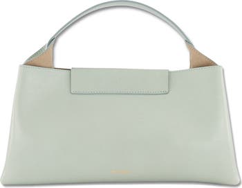 A dual-compartment design adds structure and facilitates organization to this handcrafted baguette bag made from soft Italian suede featuring the label's signature folded gussets. This fusion of architectural lines and functional elegance of the gussets creates a sense of organic movement.