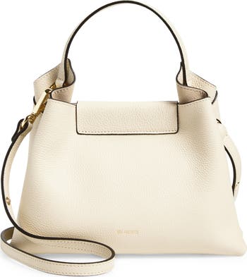 A dual-compartment design brings structure and facilitates organization in this top-handle bag handcrafted from softly pebbled leather with the label's signature folded gussets. This fusion of architectural lines and functional elegance of the gussets creates a sense of organic movement.