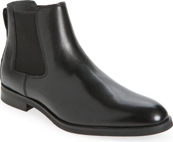 Streamlined and smart, this Chelsea boot made of well-polished leather features tonal going and an undecorated toe to create a minimalist aesthetic with maximum wardrobe versatility. Its smooth finish complements any elevated-casual look, while its boot construction takes any semiformal outfit down a notch.
