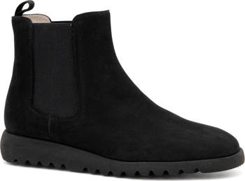 A subtle platform and durable sawtooth sole bring balance and stability to a classic leather Chelsea boot featuring a foam-cushioned footbed for daylong comfort.