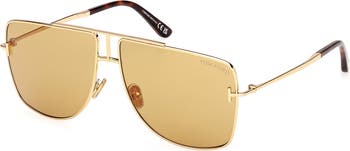 Galvanized metal frames feature sharp angles and a retro-cool silhouette on Italian-made navigator sunglasses featuring adjustable nose pads and T-bar logos at the hinges.