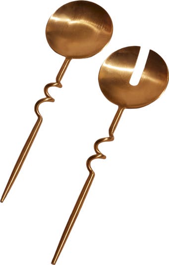 Stainless Steel Brushed Brass Finish Cutlery, set of 2 servers. Dishwasher Safe, Handcrafted in India.