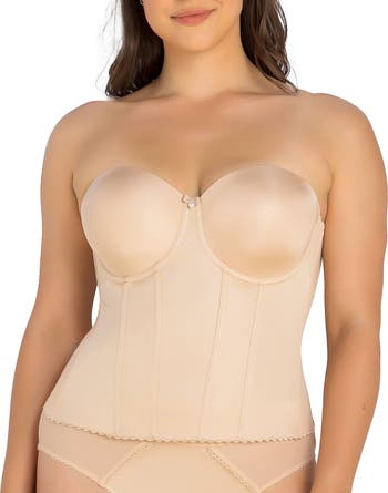 Make your special day even better with Elise, the perfect full back, smooth, strapless bustier! Designed to provide the ultimate lift and support, the seamless, light foam, contour cups and strapless design with silicone elastic at the neckline and top back ensure the bust maintains lift and support under any garment. The full longline, smoothing back is designed to sculpt the body while utilizing flexible boning which provides the ultimate comfort. Elise is especially designed to be worn under bridal gowns and special occasion dresses with hybrid sizing available in S-2X Plus