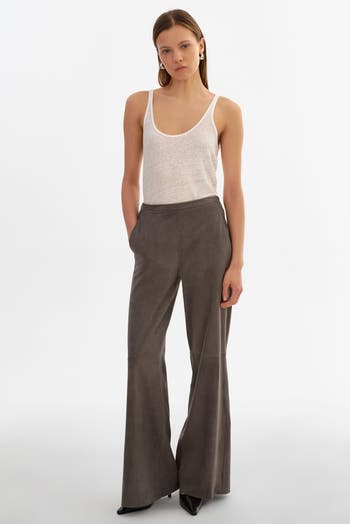 Soft and easy, with a polished finish. The Elise Suede Wide Leg Pants moves beautifully with the body, creating a relaxed silhouette that feels elevated without effort. Designed for comfort yet rich in texture, it’s a statement in quiet luxury.