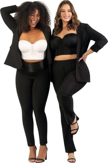 This stylish, strapless, longline bra has light foam, smooth cups. Silicone elastic at the neckline and top back keeps the cups in place. The multiple hook and eye longline back closure helps smooth and adds the ultimate support; perfect for full figured and full busted women.