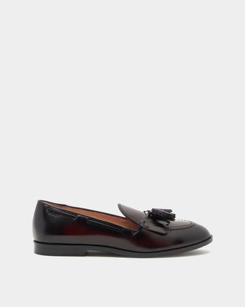 Inspired an archival design, this Elite loafer is in soft calfskin with a brushed finish. Two tassels embellish the moccasin-stitched almond toe.