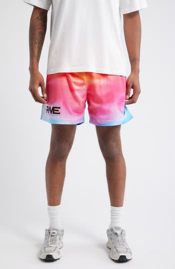 Designed for basketball and perfect for any activity, these mesh athletic shorts feature house logos on each leg and a basketball print splashed in a riot of bright colors. They cinch above the hips and sport a relaxed fit with a lightweight lining for easy movement and enhanced comfort.