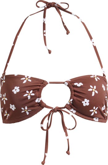 '90s-inspired blossoms cover this playful bandeau bikini top complete with removable halter straps.
