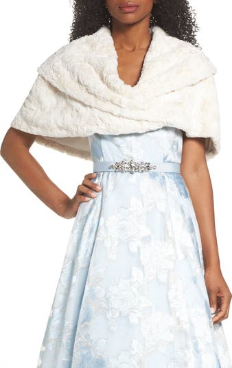 A plush faux-fur stole with a fold-over neckline is perfect for gracing chilly shoulders.