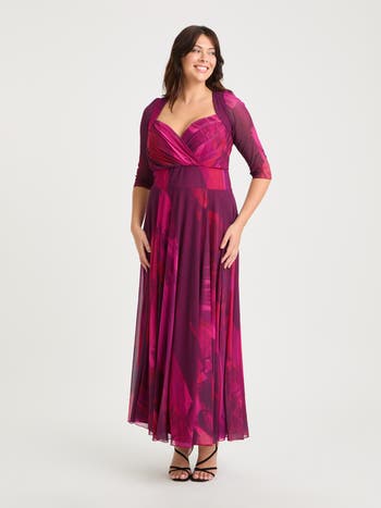 The Elizabeth Mesh Print Maxi Gown features a gorgeous, daring low-cut, wrap bodice adorned with a print that the photos just can not capture and is made in a super soft stretch POWERFIT® mesh. The elasticated MagicBand®, enhances your figure. Perfect for any occasion, this is a truly sensational maxi dress with wrap sweetheart neck line. Please note there are detachable shoulder pads that elongates as per your preference.