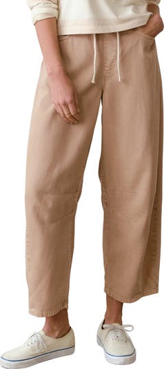 Level up your laid-back look in comfy nonstretch-denim jeans designed with barrel legs for easy movement and a rope-drawstring waist to enhance the easygoing attitude.
