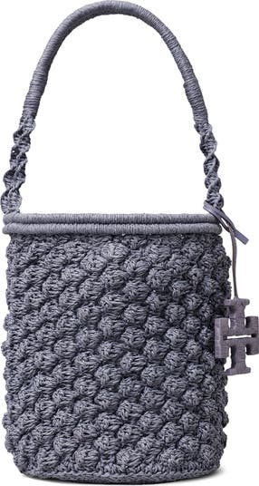 Complete your summery 'fit with a hand-crochet straw bag hung from a top-carry handle and embellished with a bit of brand love wrapped at the strap.