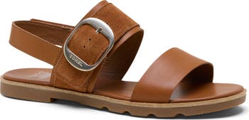 - Adjustable slingback strap with hook-and-loop closure; adjustable strap with buckle closure