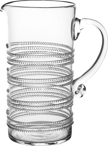 Mouth-blown of Czech glass and festooned with a trio of sparkling thread motifs, this elegant pitcher will bring an opulent touch to your tablescape.