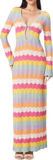 Colorful chevron stripes enliven this airy cover-up maxi dress designed with heart hardware at the keyhole neckline and long sleeves.