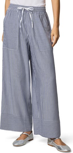 Crisp stripes kick up the easygoing style of these roomy wide-leg pants that are ready for the weekend.