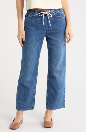 Level up your laid-back look in comfy nonstretch denim pants crafted with wide legs for easy movement and a rope-drawstring waist to enhance the easygoing attitude.