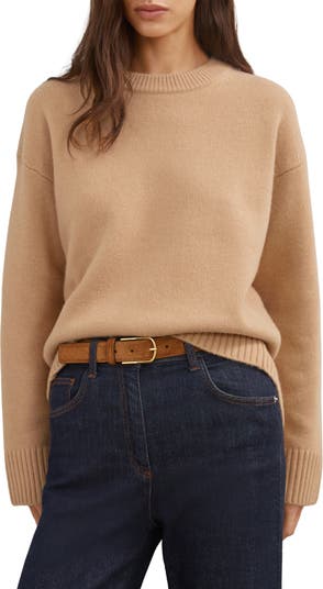 Dropped shoulders enhance the relaxed, longline fit of this crewneck sweater elevated in a cashmere-kissed wool blend.