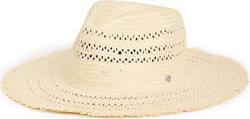 Fall for the classic silhouette of this braided straw fedora updated with airy perforations and a fringe-trimmed brim.