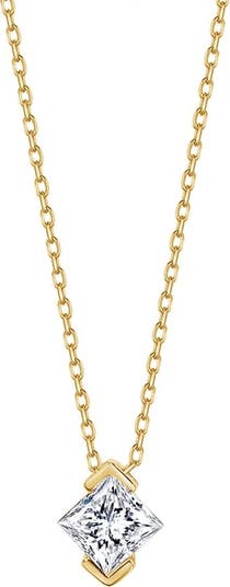A classic pendant with a marquis shaped cubic zirconia stone in a gold setting and a delicate gold chain.