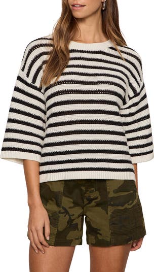 Striped openwork crochet brings airy texture to this knit sweater made from warm cotton and framed by subtly flared bell sleeves.