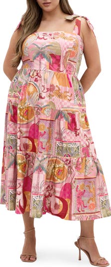 Adjustable tie shoulders lend a sweet, charming finish to this fit-and-flare midi dress fashioned with a flowy skirt that brings twirl-ready movement to the A-line silhouette.