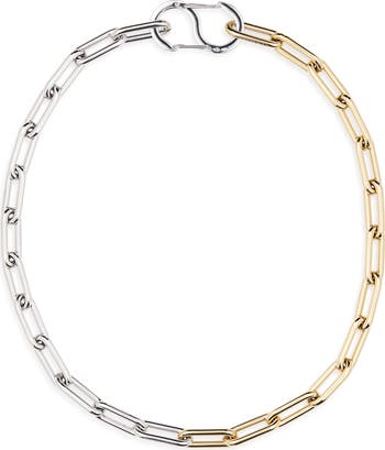 Complete your look with the impeccable modern style of this minimalist paperclip-link necklace in a mixed-metal design.