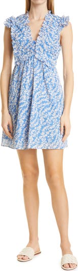 Cute ruffle accents bless the neckline and shoulders of this floral dress that's fit for a sunny day in the park.