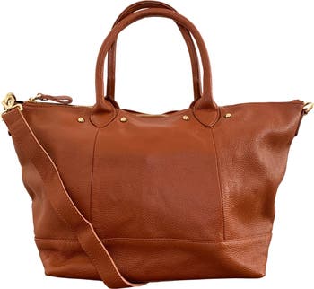 This slouchy work-to-weekend style will quickly become your go-to handbag is featured in a richly leather fabrication with double handle shoulder for a relax carrying. We continue to support the zero waste initiative for a better planet. This leather tote is handmade by exceptionally skilled artisans with top-grade leather meant to last. With respect and embrace of our artisans' hand skills, our productions are made in small batches and on-demand to avoid excessive consumption and waste. *Fine leather exterior. *Top zipper closure. *Lined. *Detachable shoulder strap. *Back inside zipper pocket. *Lightweight with roomy size. Size: 18" L x 6.25" W x 10.75" H and 6" handle drop. Detachable shoulder strap length is 31.5". Material: Leather. Shipping & Returns: Return accepted for store credit only. Please see our Shipping & Returns page for more details.