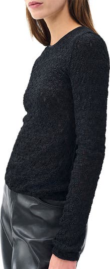 Textured lace romances this top that's kissed with stretch for a close fit.