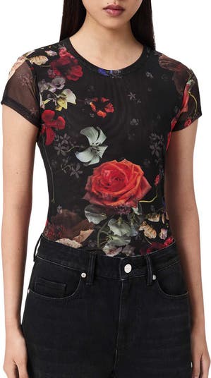 Made of lightweight mesh, this floral T-shirt is supersoft and comfortably stretchy.