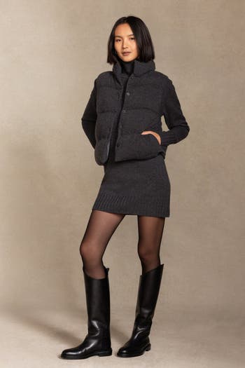 A chic reinvention of a winter favorite, this sleeveless cashmere puffer vest features a funnel neck, button-front closure, and slit pockets for effortless layering.