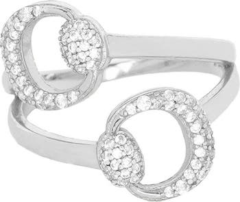 Glittering pavé circles and a polished band shape the flexible bypass silhouette of this everyday ring.