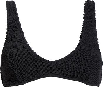 A scrunchy texture adds to the fun of this solid bikini top fitted with adjustable straps for a just-right fit.